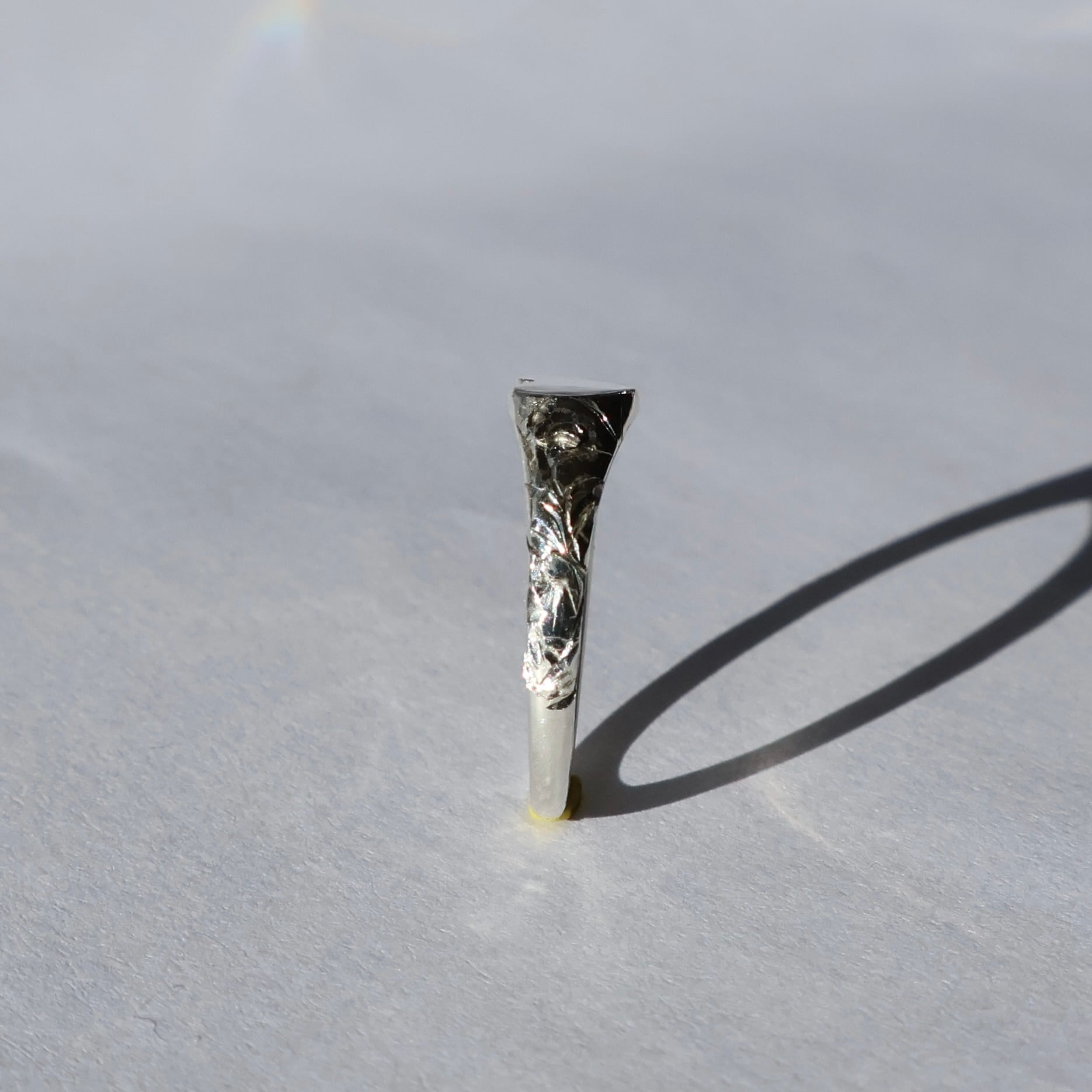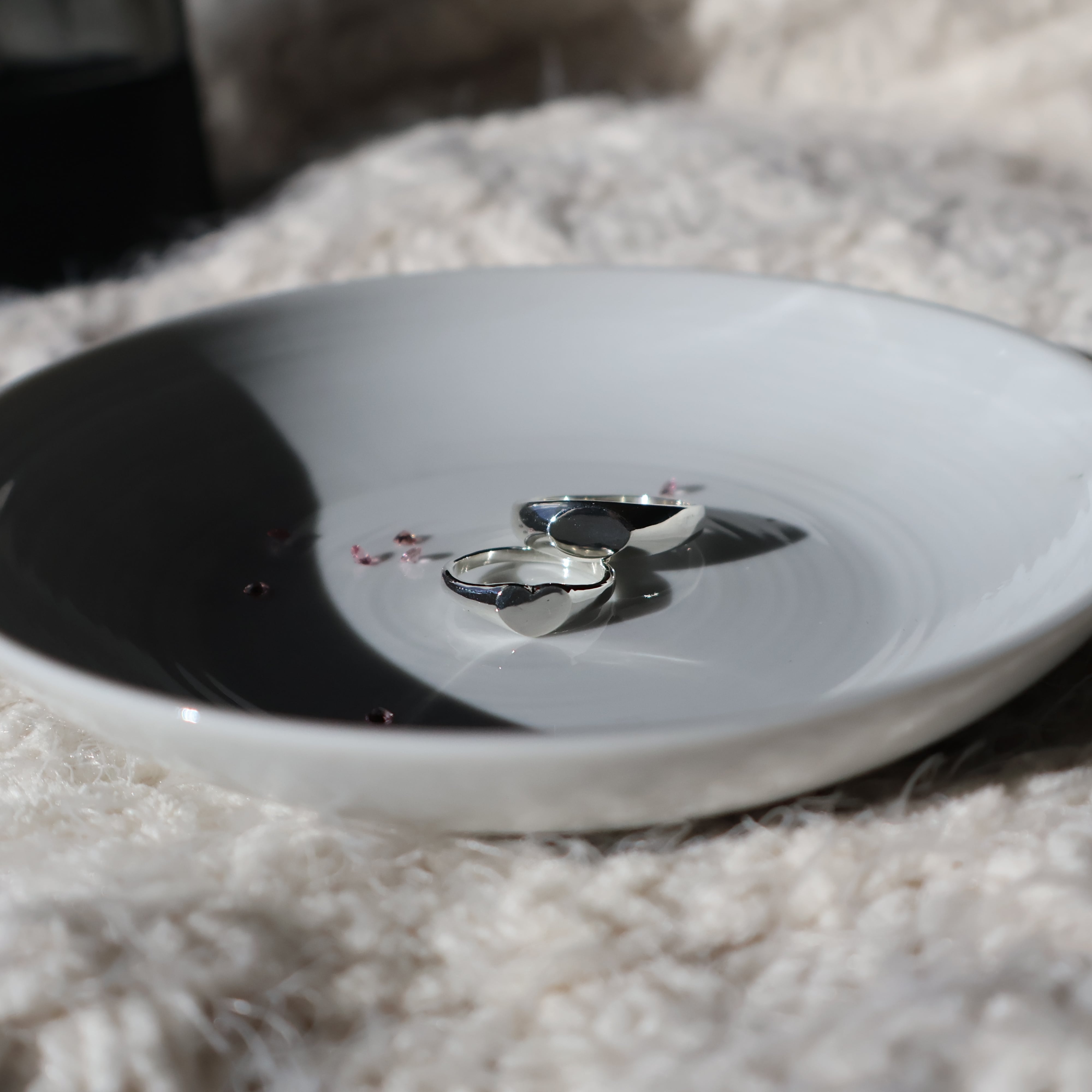 平らなフォルムに落とし込むことで、甘さを抑えた静かな存在感に仕上げました。