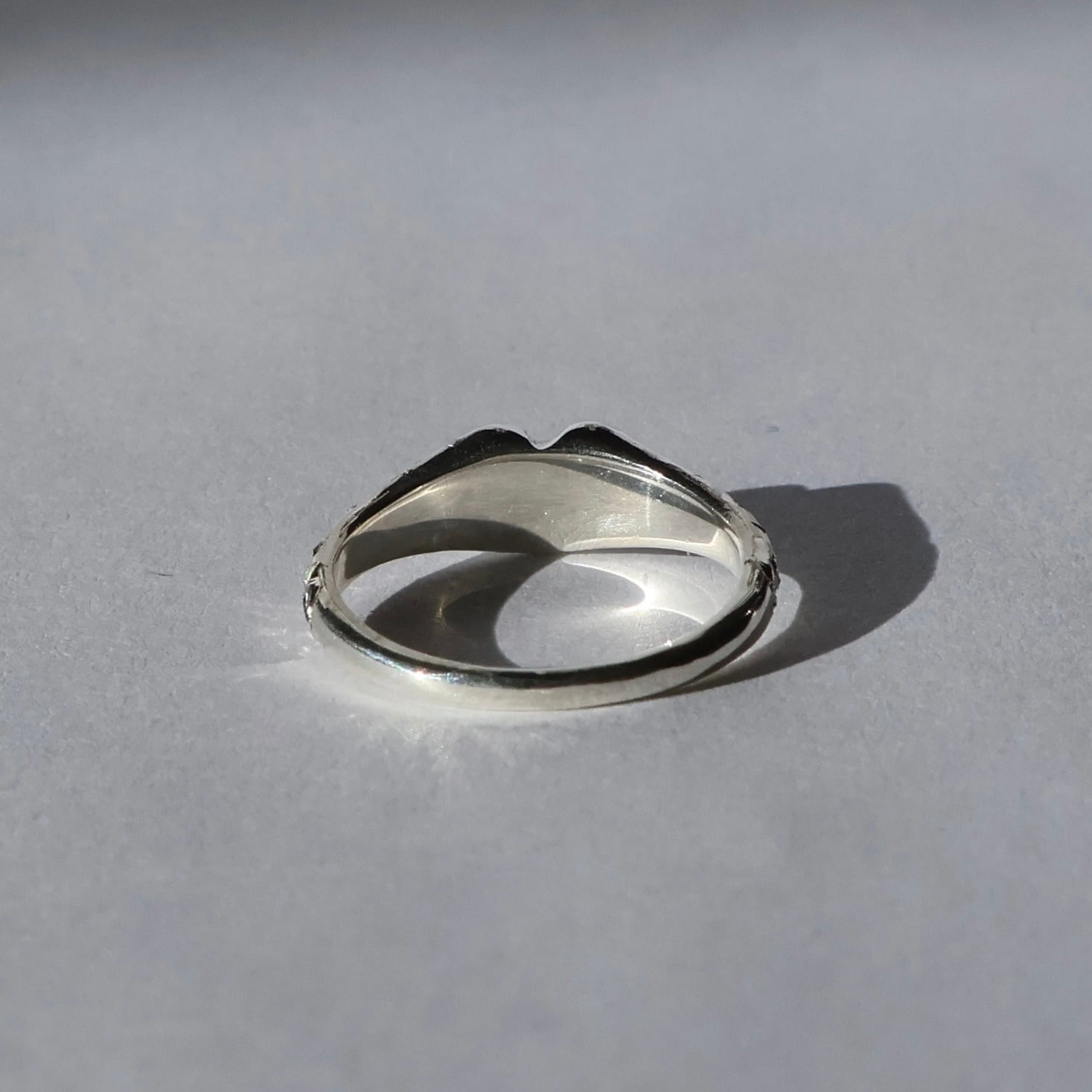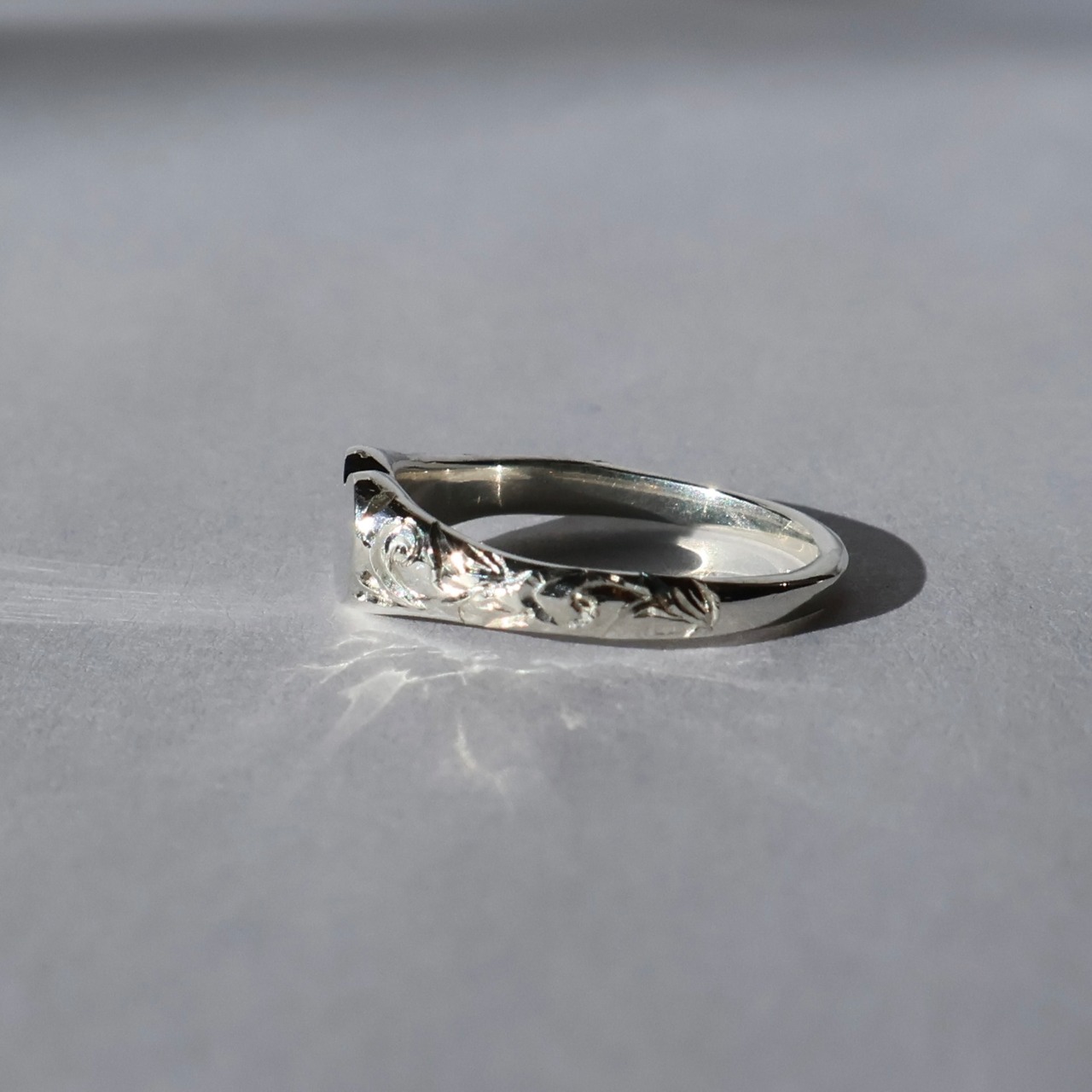 小さな面積だからこそ映えるデザインは、ピンキーリングとして着けたときにほどよいアクセントに。