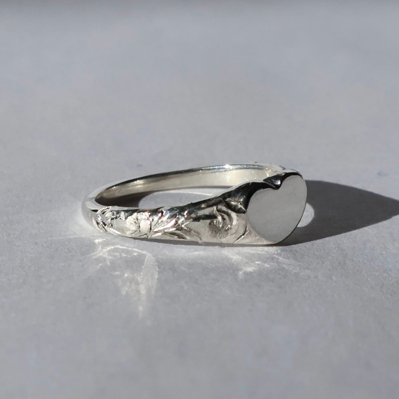 Hand Engraved Heart Signet Ring